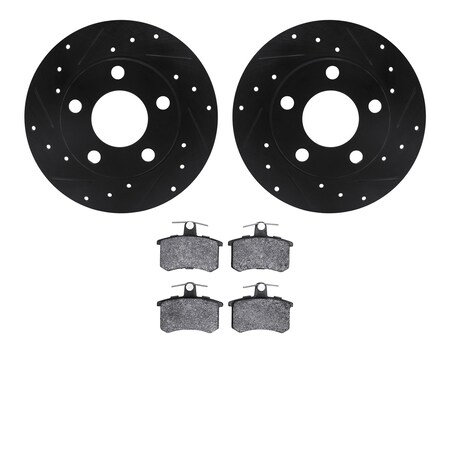 8602-74016, Rotors-Drilled and Slotted-Black with 5000 Euro Ceramic Brake Pads, Zinc Coated