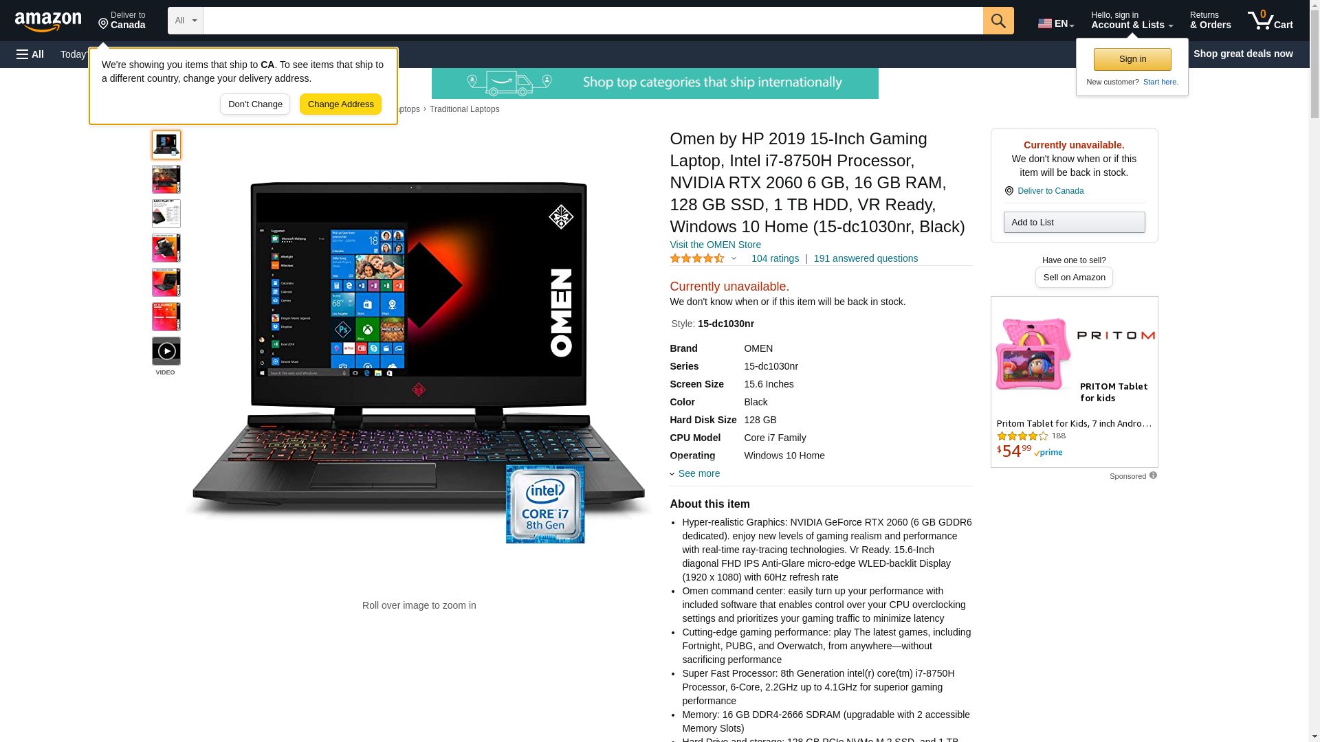Omen by HP 2019 15-Inch Gaming Laptop, Intel i7-8750H Processor, NVIDIA RTX 2070 8 GB, 16 GB RAM, 128 GB SSD, 1 TB HDD, VR Ready, Windows 10 Home (15-dc1040nr, Black)