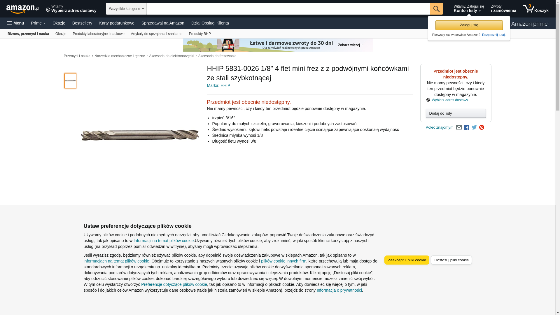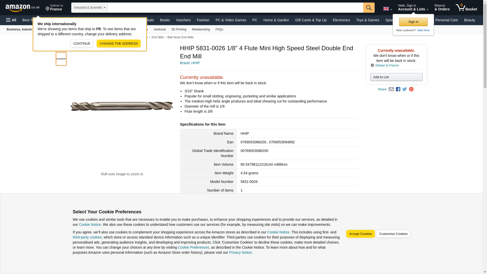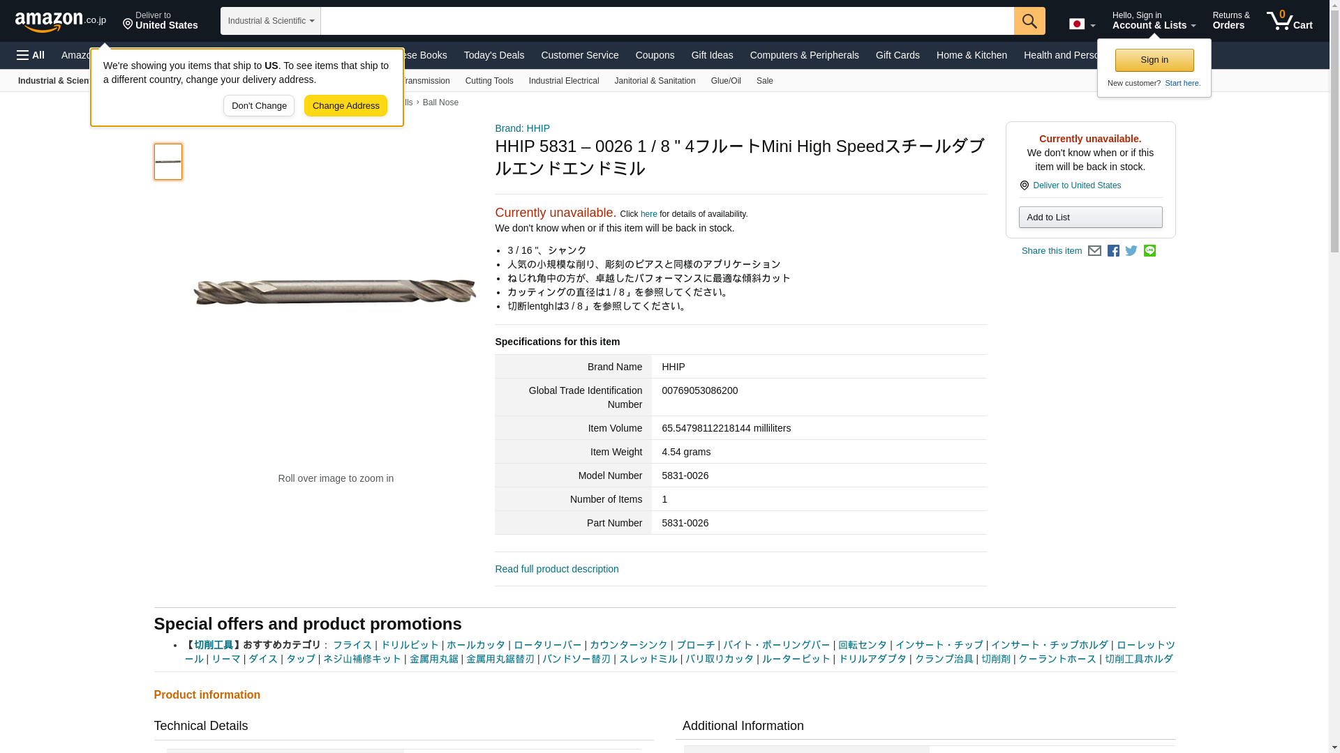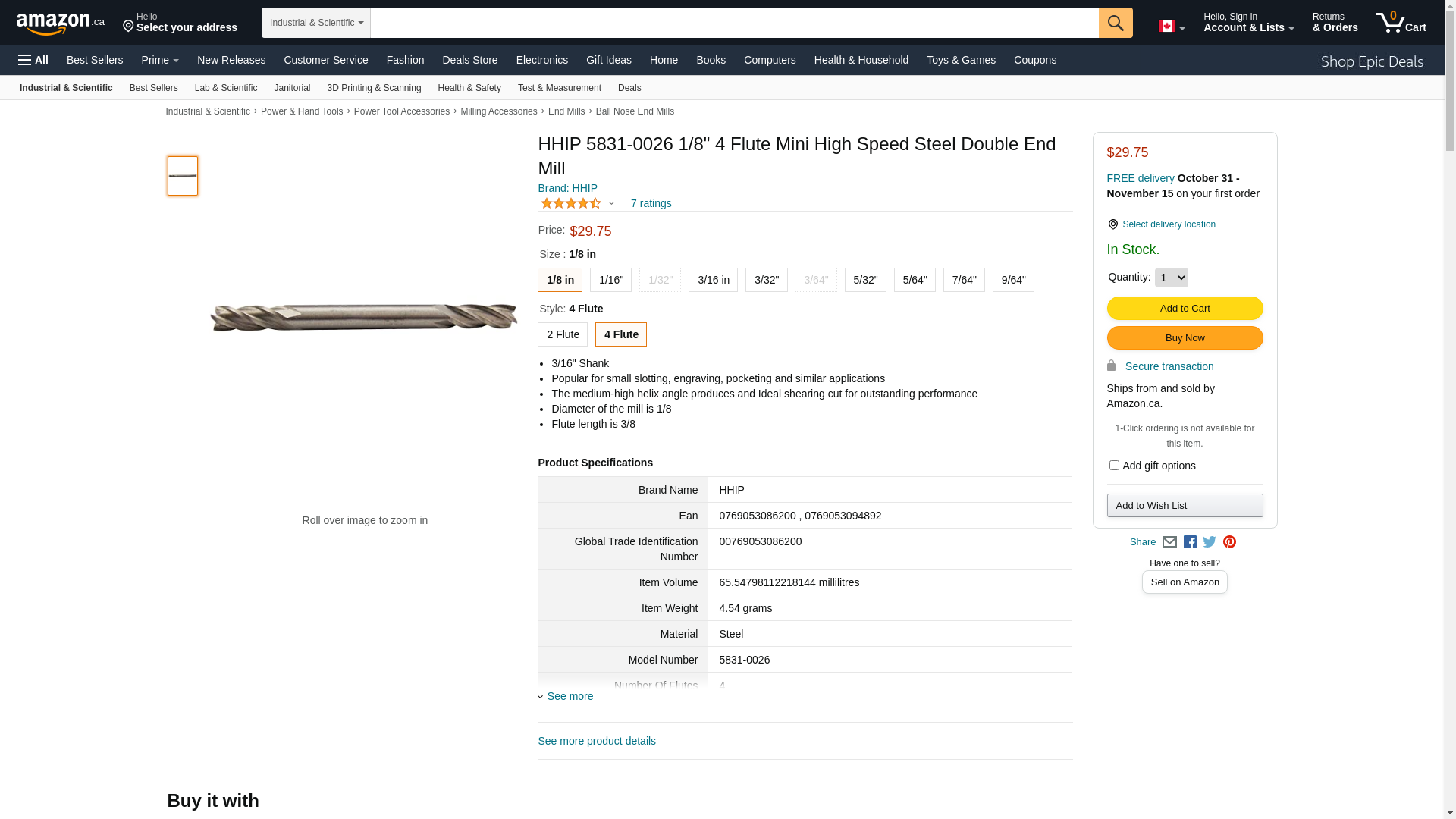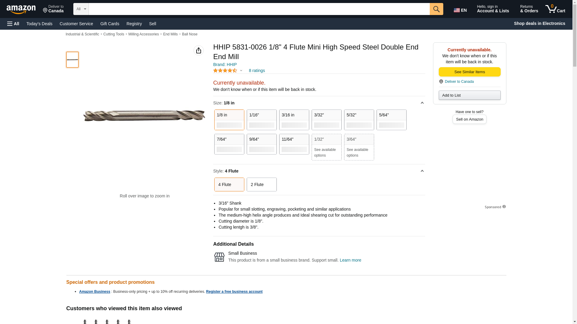 HHIP 5831-0026 1/8" 4 Flute Mini High Speed Steel Double End End Mill