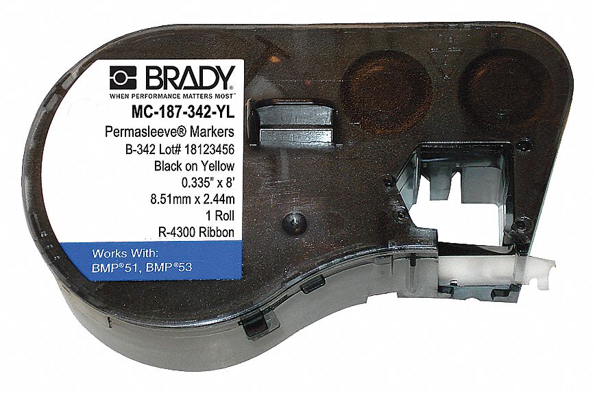 Brady MC-187-342-YL Polyolefin B-342 Black on Yellow Label Maker Cartridge, 7' Width x 21/64" Height, For BMP51/BMP53 Printers