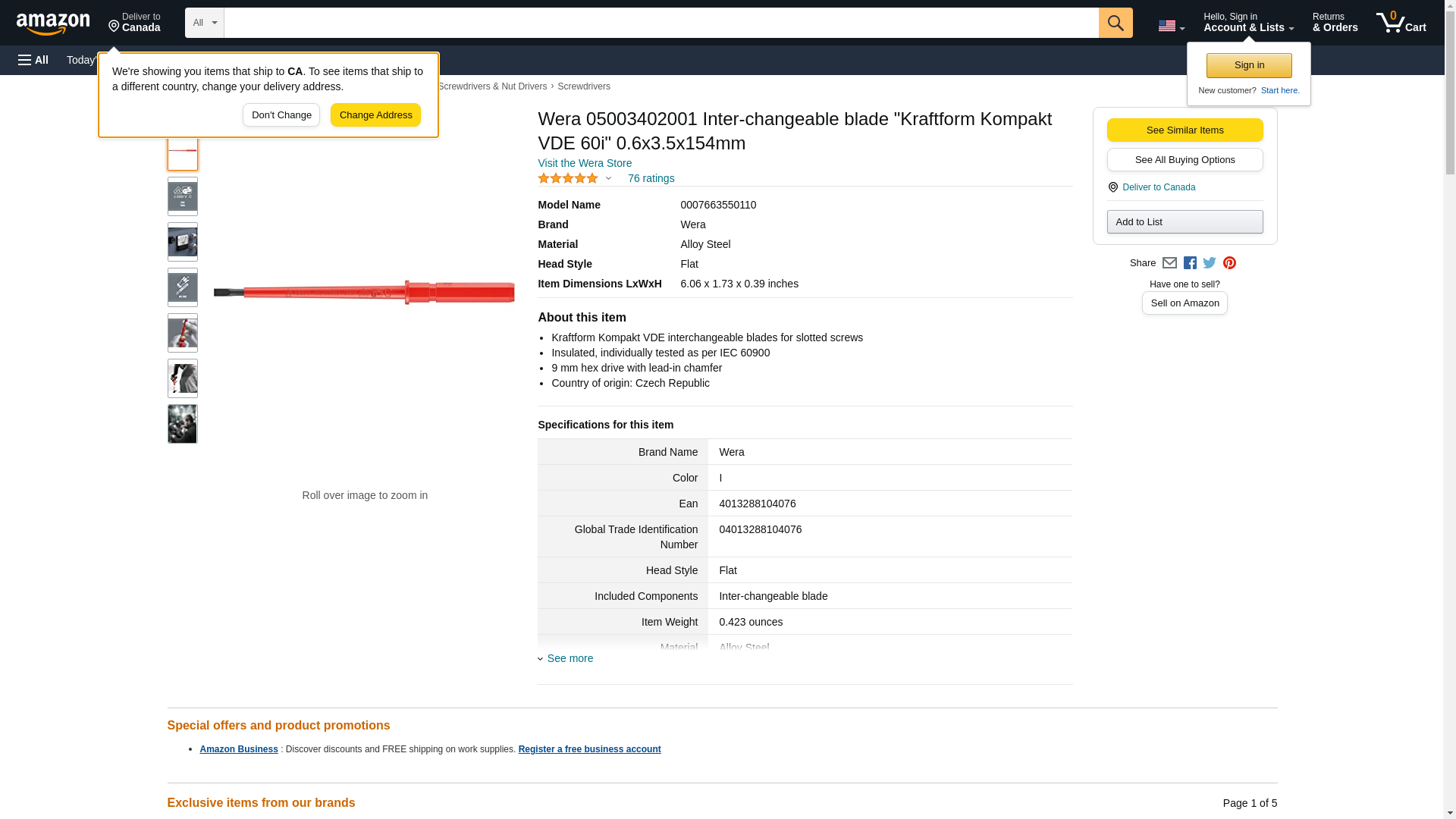 Wera 05003402001 Inter-changeable blade"Kraftform Kompakt VDE 60i" 0.6x3.5x154mm