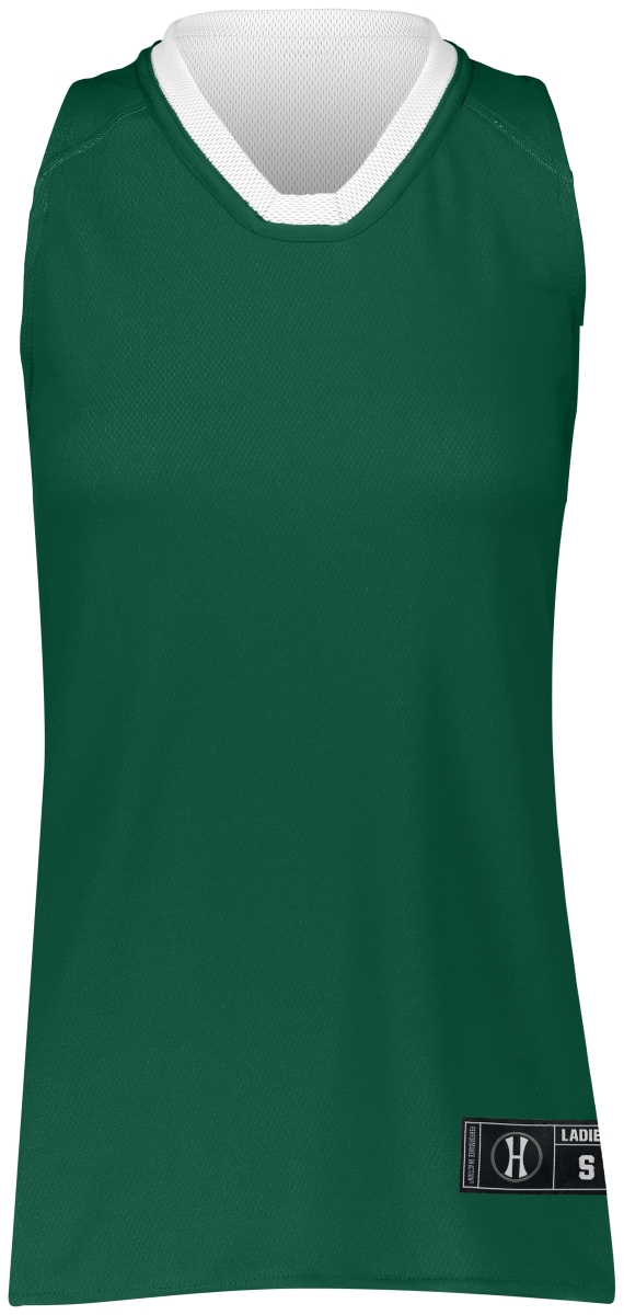 Holloway 224378.436.L Ladies Dual-Side Single Ply Basketball Jersey, Forest & White - Large