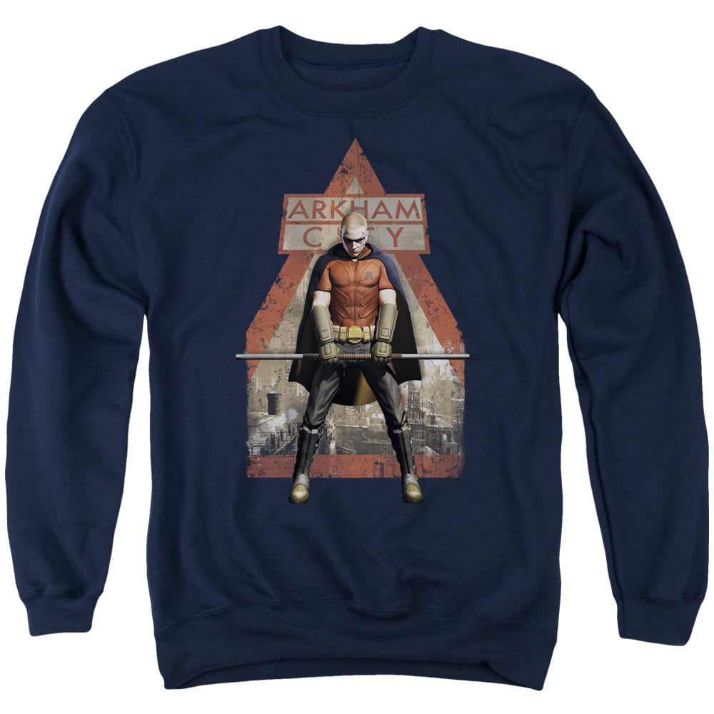 Trevco BM2008-AS-1 Arkham City & Arkham Robin Adult Crewneck Sweatshirt, Navy - Small