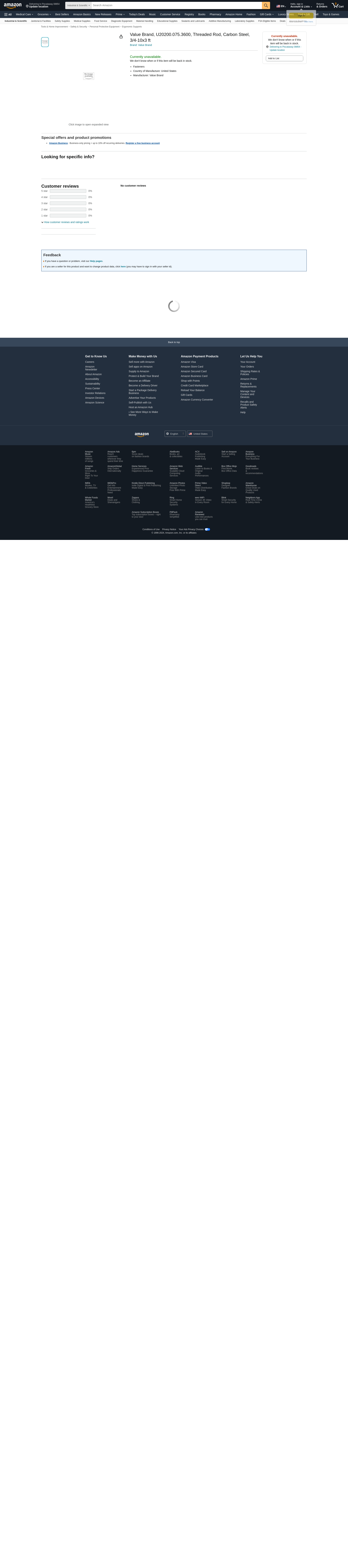 Value Brand, U20200.075.3600, Threaded Rod, Carbon Steel, 3/4-10x3 ft