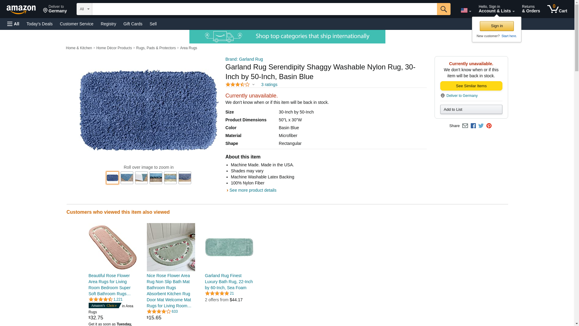 Garland Rug Serendipity Shaggy Washable Nylon Rug, 30-Inch by 50-Inch, Basin Blue