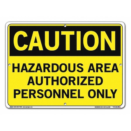 Vestil SI-C-45-C-AL-080 HAZARDOUS AREA AUTHORIZED PERSONNEL ONLY Caution Sign, Aluminum, 0.080" Overall Size, 14.5" W x 10.5" H