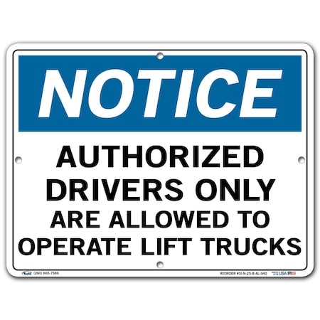 Vestil SI-N-25-B-AL-040 Notice Sign Aluminum .040" Overall Size 12.5"W x 9.5"H Authorized Drivers Only are Allowed to Operate Lift Trucks , 9.5" Height, 12.5" Wide, 0.04" Length