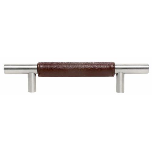 12" C/C Leather Bar Pull - Stainless Steel 14-1/2" Overall: 12" Center To Center: 1-3/8" Projection Availble In Option Of Black Or Brown Leather