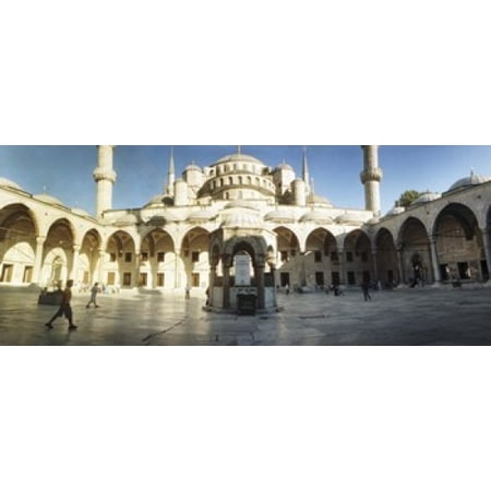 Panoramic Images Stretched Canvas Art - Courtyard of Blue Mosque in Istanbul, Turkey - Large 30 x 13 inch Wall Art Decor Size.