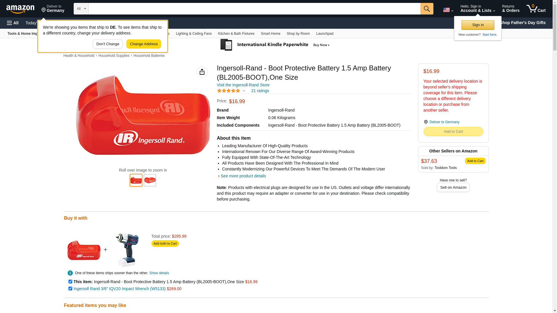 Ingersoll-Rand - Boot Protective Battery 1.5 Amp Battery (BL2005-BOOT),One Size