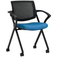 Offices to Go Gennex Nesting Armchair with Fixed Arms, Sky Blue Waterfall Fabric Seat and Black Mesh Back | Grand & Toy