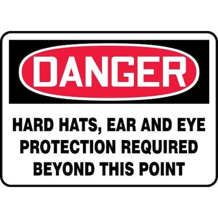 Accuform Signs MPPE153VS Adhesive Vinyl Safety Sign, Legend "Danger Hard Hats, Ear and Eye Protection Required Beyond This Point", 7" Length x 10" Width x 0.004" Thickness, Red/Black on White