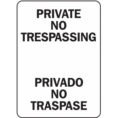 Accuform SBMATR508VA Aluminum Sign, Legend "Private NO TRESPASSING/Privado NO TRASPASE", 14" Length x 10" Width, Black on White