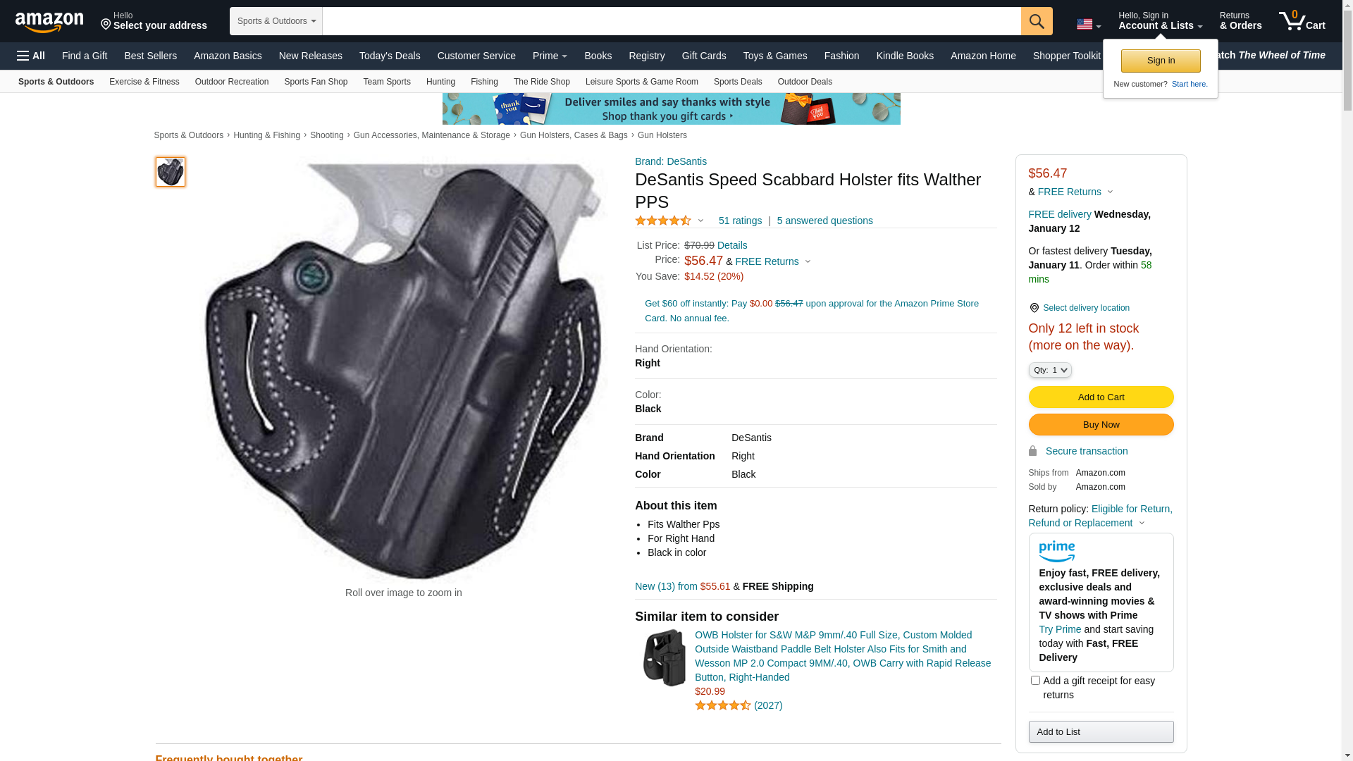 DeSantis Speed Scabbard Holster fits Walther PPS, Right Hand, Black