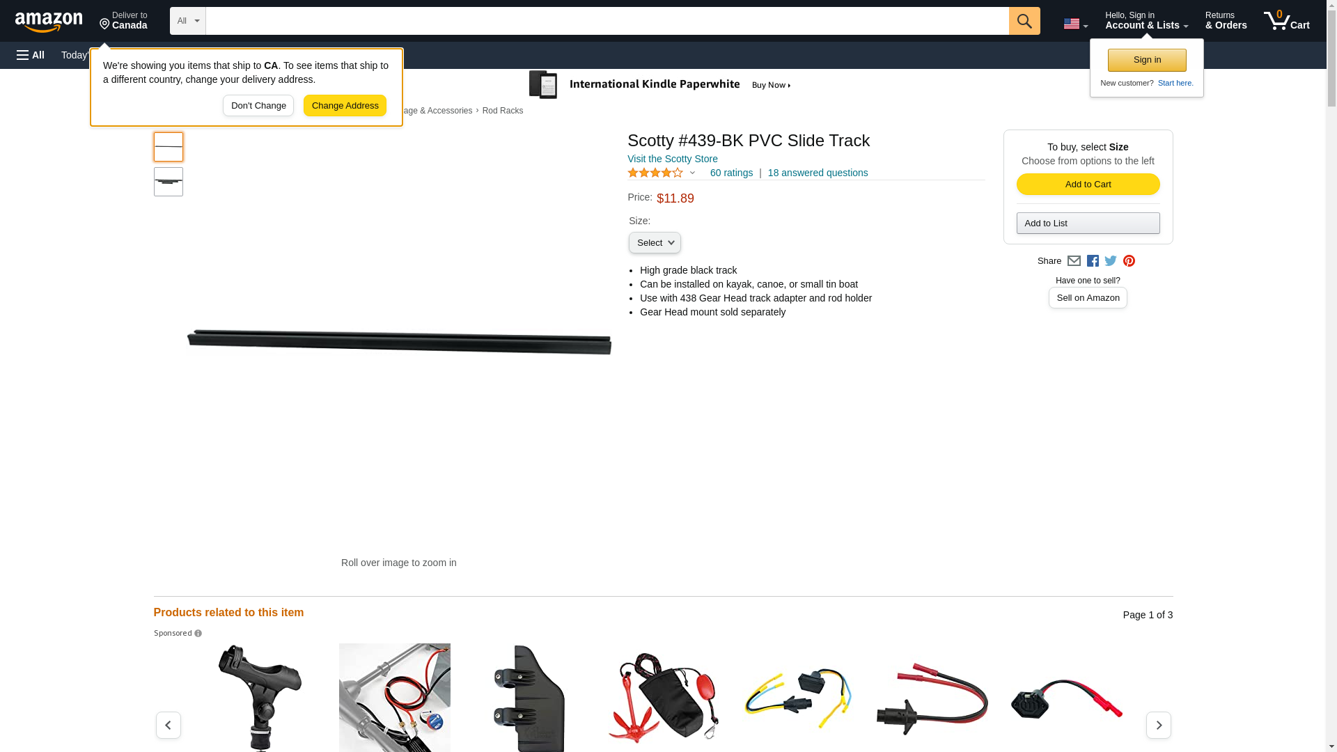 Scotty 439-BK-16 The Scotty Slide Track High grade black track can be installed on a kayak, canoe or small tin boat. Slide the 438 Gear-Head track adapter onto the track, click in a favorite rod holder and start fishing! (Gear-Head Mount not included)Shipping Length: 6.0 inch X Shipping Length: 4.0 inch X Shipping Length: 2.0 inch X