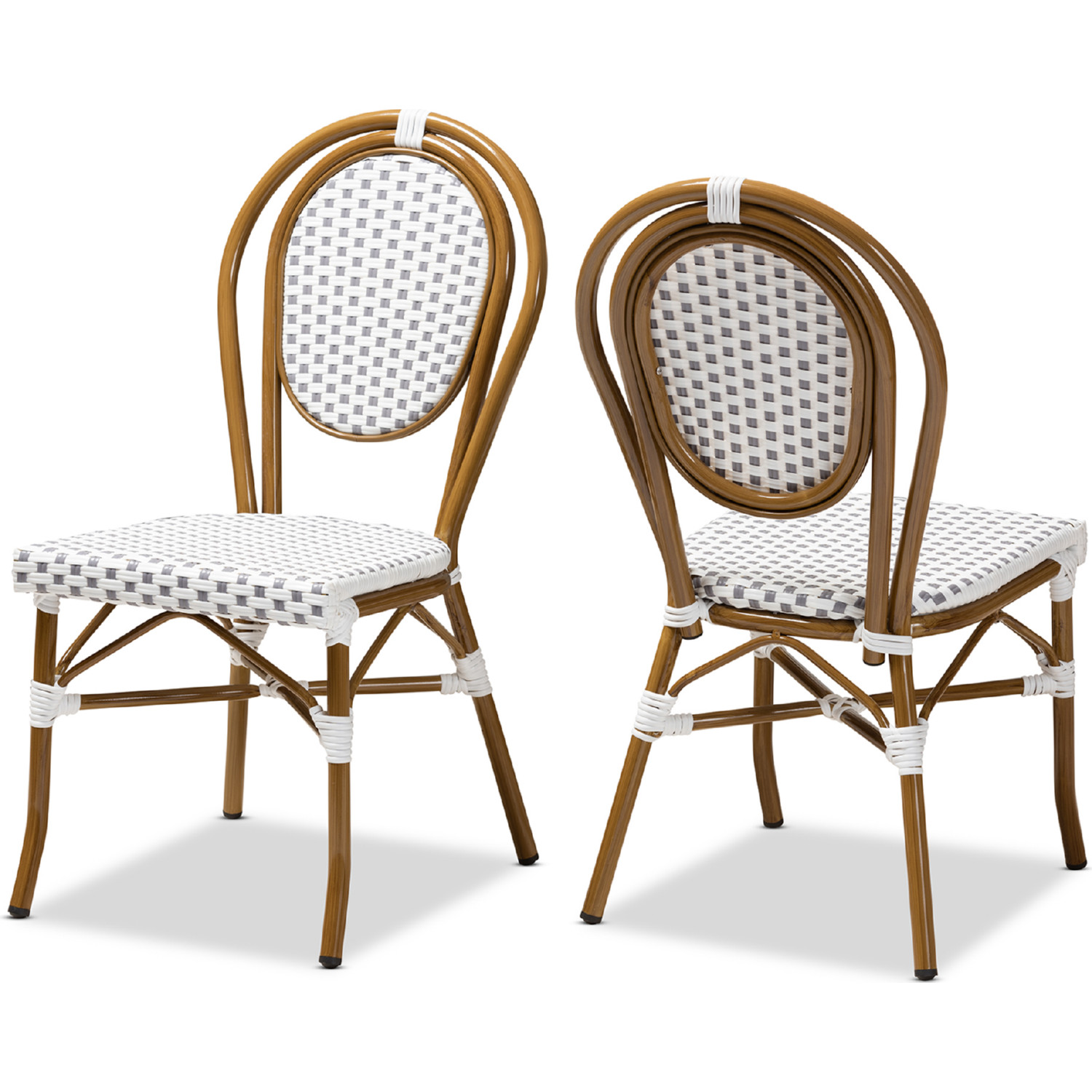 Baxton WA-4094-Grey/White-DC Gauthier Indoor Outdoor Dining Chair in Gray & White Bamboo Style (Set of 2)