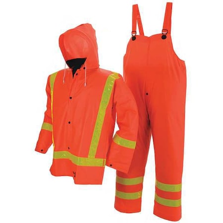 3-Piece Flame Resistant Rain Suit with Jacket or Bib Overall, Arc Flash PPE Category 0, Rainwear Primary Material Polyester, PVC, XL, Orange, Rainwear Features Wind Resistant, Hood Style Detachable, High-Visibility No, Rainwear ANSI Class Unrated, Hood Included Yes, Fabric Weight 7 oz, Fits Chest Size 47 in, Fits Waist Size 39 in, Men's, Inseam 30 in, Jacket Length 32 in, Liner Material Polyester, PVC