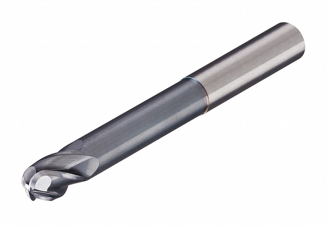 Slightly increased flute and overall length offers the greatest versatility. Excellent concentricity on ball nose radius. Superior "blend" between ball radius and linear cutting edge.
