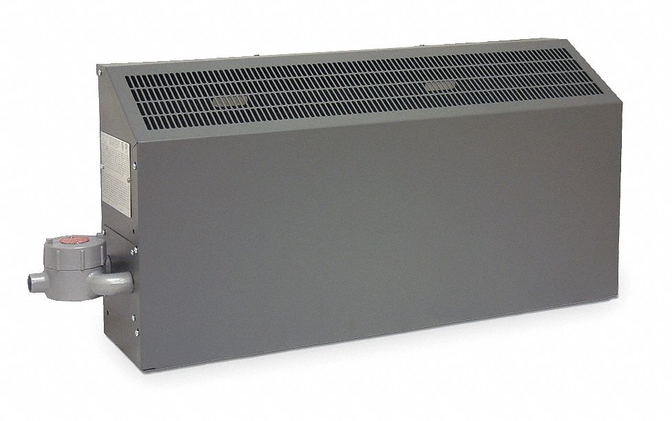 'Hazardous Location Wall Heater, Heater Type Convection, 1.8 kW, 6143 BtuH Output, Heater Voltage 120VAC, 15 Amps AC, 1 Phase, Overall Height 17-29/32 In., Overall Width 39 In., Overall Depth 8-5/16 In., 50/60 Hz, Cabinet Width 34 In., Cabinet Depth 8-5/16 In., Cabinet Height 17-29/32 In., Housing Material 16 ga. Steel Cabinet, Housing Finish Gray Epoxy Textured Powder Coated'
