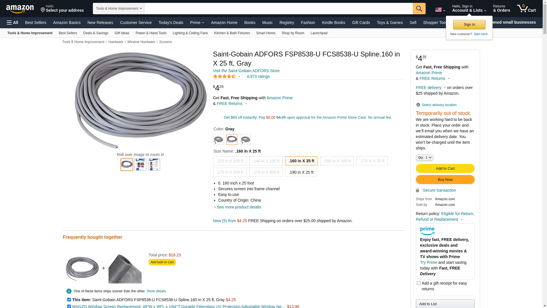 ADFORS Spline, .160" x 25', Gray