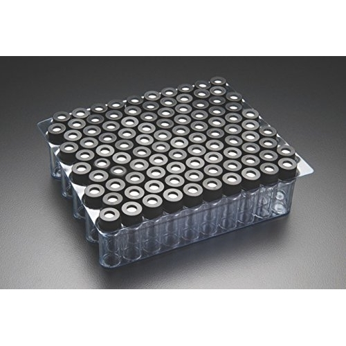 Chromatography Vials, Pre-assembled Convenience Pack, Standard Opening Screw, 8x425mm Thread, Amber Vial, Black Polypropylene Cap, PTFE/Red Rubber Septa, 0.010", 100/CS | Southern Labware