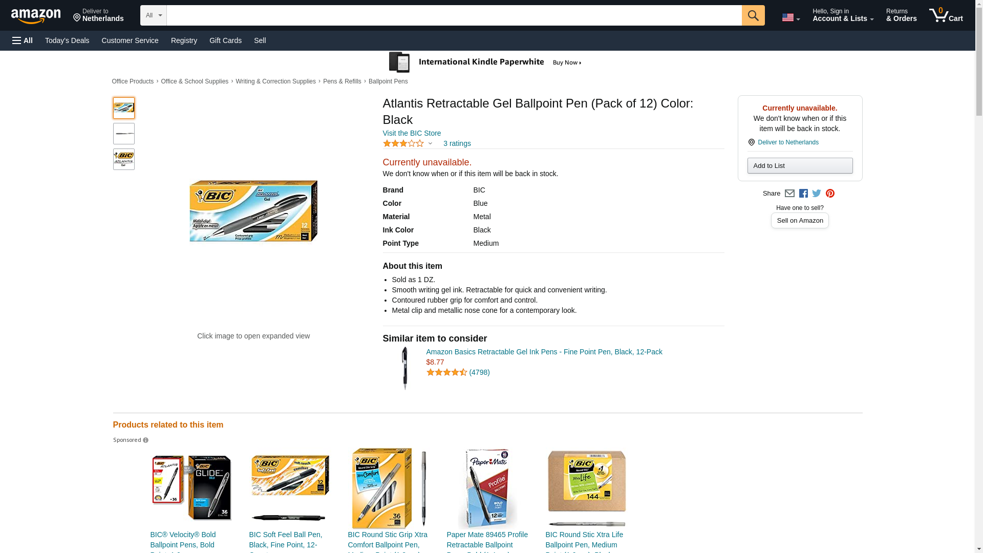 BICRATG11BK Color: Black Features: -Ballpoint pen. -Retractable. -Point type: Medium. -Quantity: 12 Per pack. Pen Type: -Rollerball (Gel). Pen Type: -Ballpoint. Retractable: -Yes. Ink Color: -Blue. Ink Color: -Black. Ink Color: -Red. Pack Size: -Twelve. Point: -Medium. Item: -Pens. Dimensions: Overall Length: -6 Inches. Overall Product Weight: -0.42 Pounds. Pen Size (mm): -0.7 Millimeters.