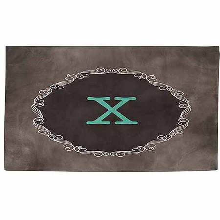 <br /> <b>Thumbprintz Chalkboard Scroll Monogram Turquoise Rug:</b> <ul> <li>Machine wash</li> <li>Weather-resistant</li> <li>Durable 100 percent polyester</li> <li>Textured design</li> <li>Printed </li> <li>Available in sizes 1.8' x 3.08' and 3.91' x 6'</li> </ul>