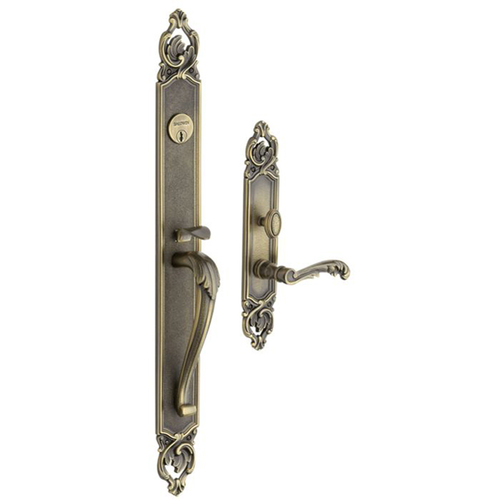 Baldwin 6948050LDBL Victoria Left Hand Double Cylinder Entry Mortise Lock Trim Antique Brass Finish