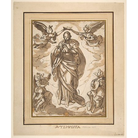 The Virgin Immaculate Crowned by Two Angels with Angel Musicians in the Foreground Poster Print by Domenico Fontana (Italian Florence 1555 “1630 Rome) (18 x 24)