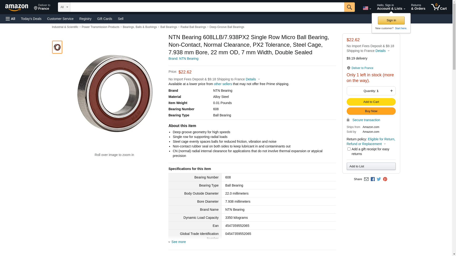 | Model | NTN 608LLB/7.938PX2 |