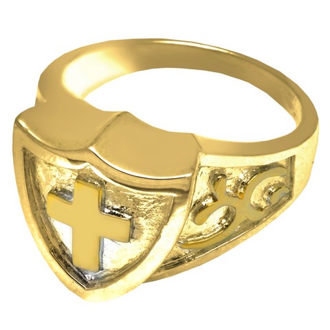 Memorial Gallery 2005GP-10 Cremation Jewelry 14K Gold Plating Cross Shield Ring, Size 10