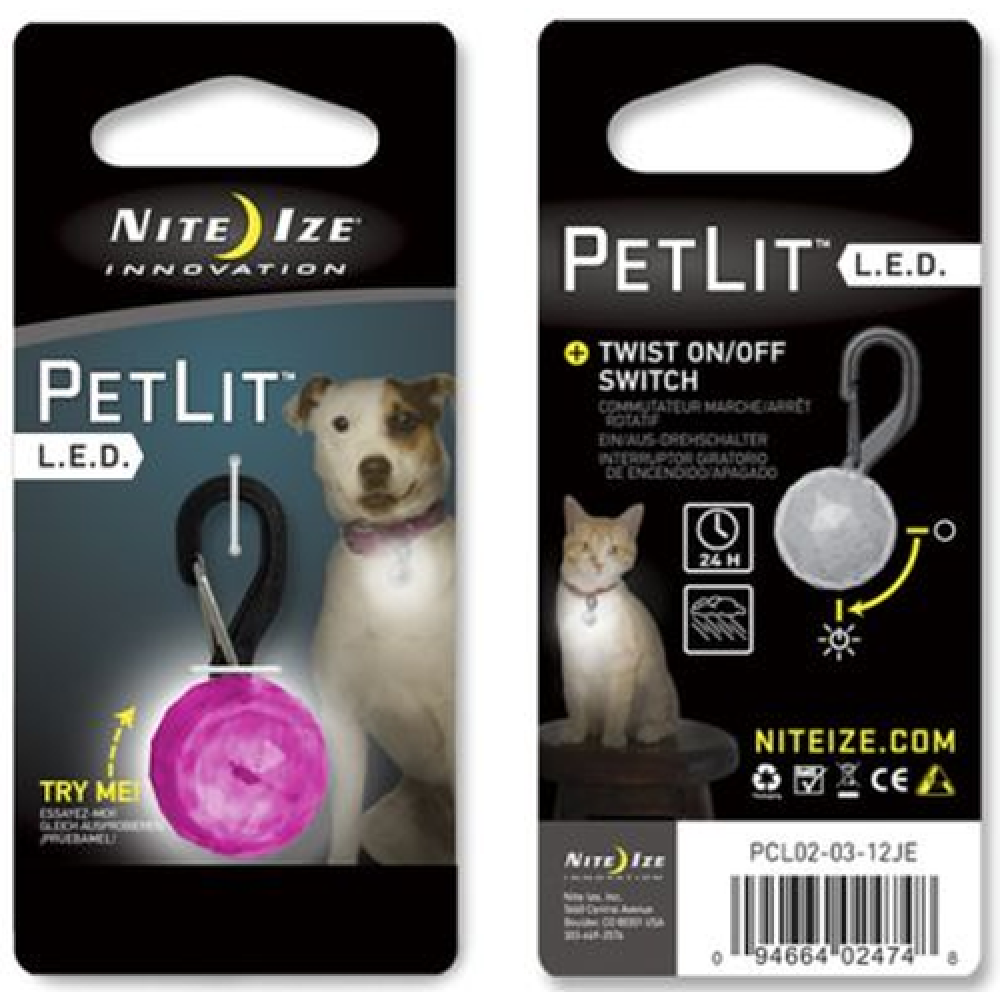Nite Ize PetLit LED Collar Light, Dog Or Cat Collar Light, Replaceable Batteries, White LED Pink Jewel Design