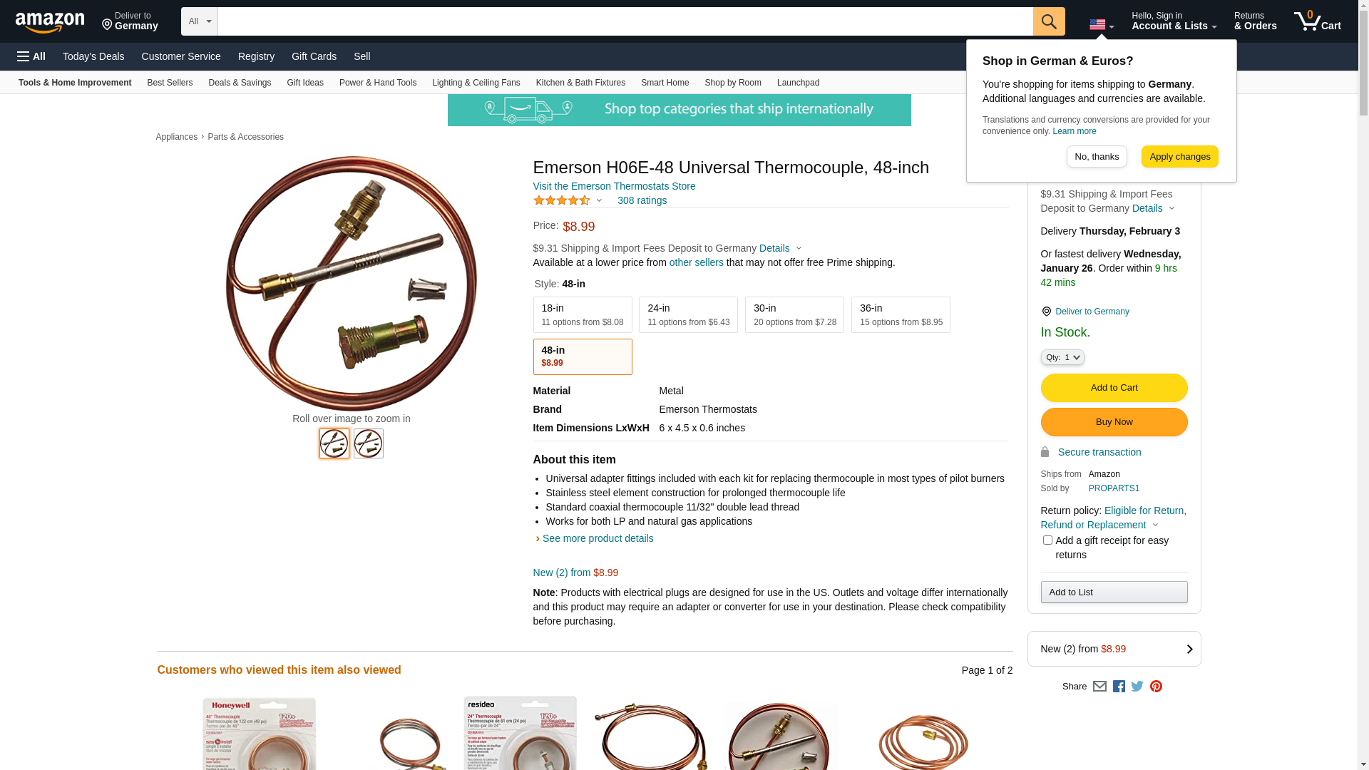 Emerson H06E-48 Universal Thermocouple, 48-inch