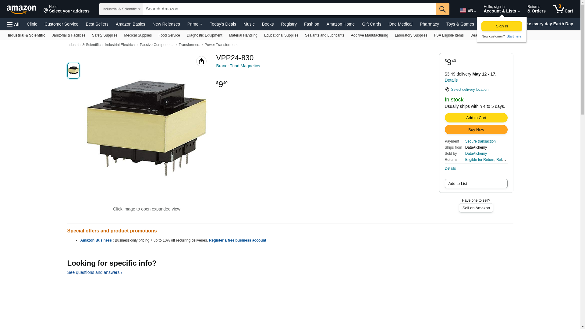 VPP24-830, Power Transformer 4000VAC 20VA 8Term. PC Pin Thru-Hole (5 Items)