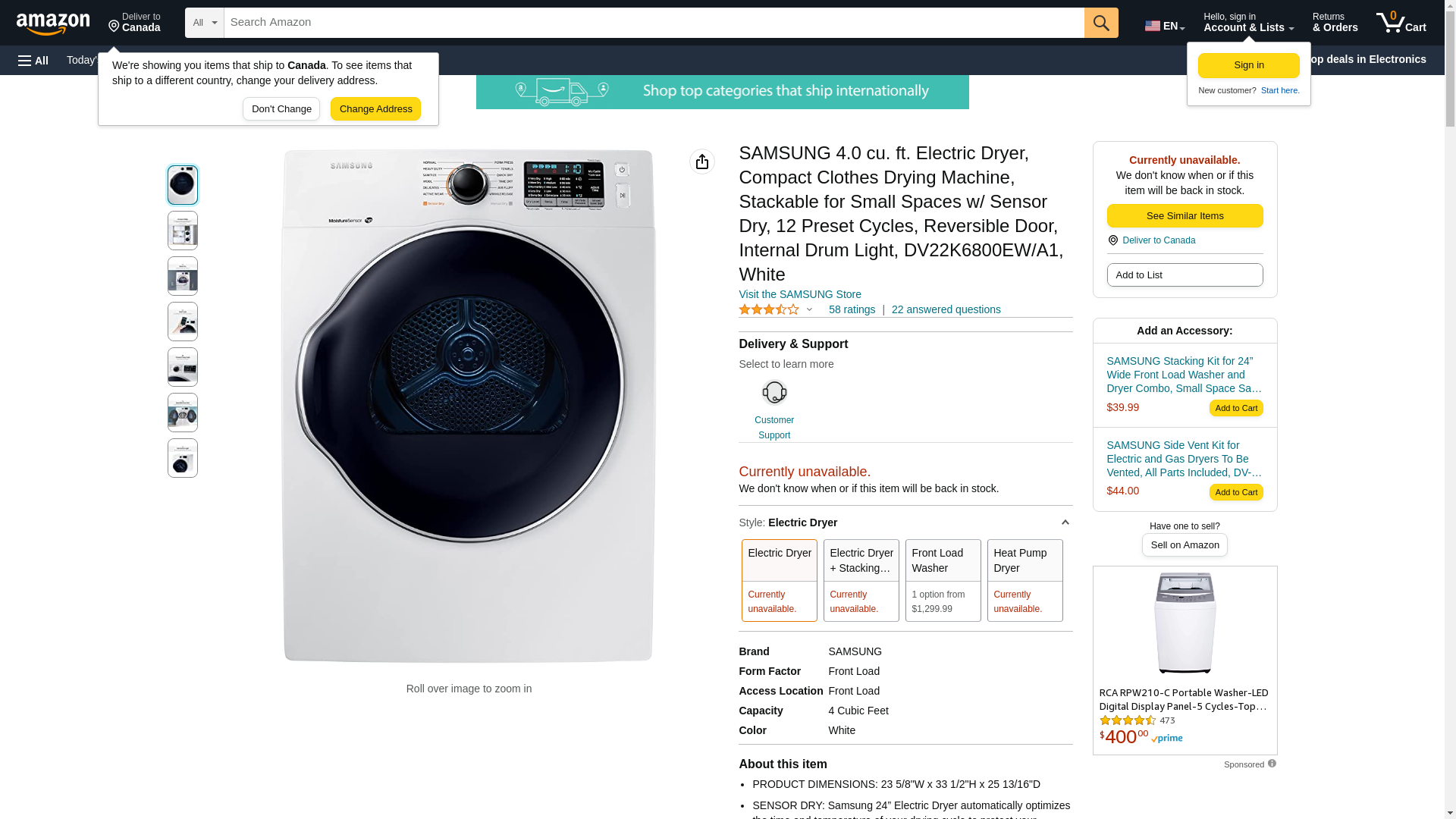 Samsung 4.0 Cu. Ft. Stackable Electric Dryer White DV22K6800EW - Best Buy