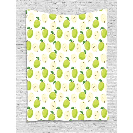 Apple Tapestry, Cartoon Style Green Fruits Stalks Core and Seeds Anatomy of an Apple, Wall Hanging for Bedroom Living Room Dorm Decor, 60W X 80L Inches, Brown Yellow Green Cream, by Ambesonne