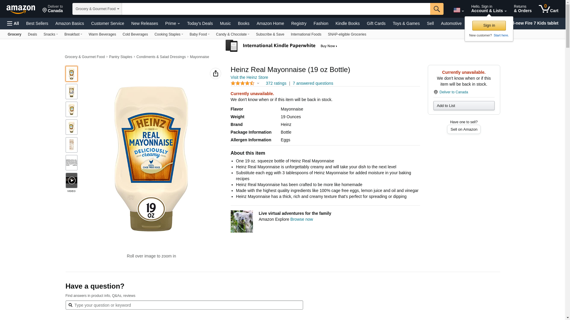 - One 19 oz. squeeze bottle of Heinz Real Mayonnaise