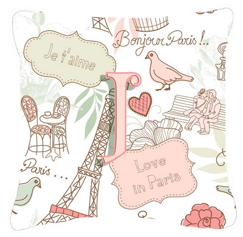 Carolines Treasures CJ2002-JPW1414 Letter J Love In Paris Pink Canvas Fabric Decorative Pillow
