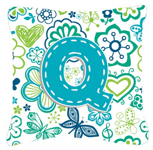 Carolines Treasures CJ2006-QPW1414 Letter Q Flowers And Butterflies Teal Blue Canvas Fabric Decorative Pillow