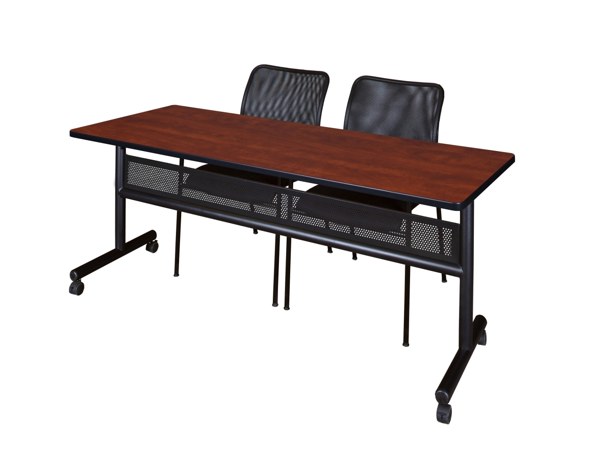 Regency MKFTM7224CH75BK 72 x 24 in. Flip Top Mobile Training Table with Modesty Panel, Cherry & 2 in. Mario Stack Ch
