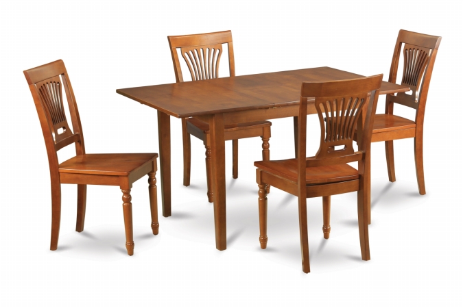 East West Furniture MLPL5-SBR-W Milan 5PC Set with Rectangular Table featured 12 in butterfly leaf and 4 Wood seat chair