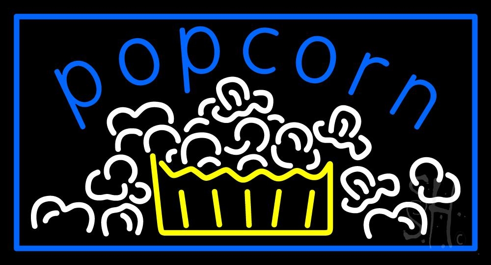 The Sign Store N105-6810 20 x 37 in. Blue Popcorn with Border Neon Sign - Blue, White & Yellow