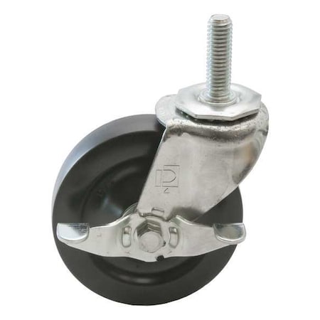 General Purpose Threaded Stem Caster, Swivel Caster with Brake, 120 lb Load Rating, 0 to 299 lb, 3 in Wheel Dia., 7/8 in Wheel Width, Rubber Wheel/Tread Material, 3 1/2 in Mounting Height, Plain, 3/8 In.-16 x 1-1/2 in Caster Stem Size, Threaded, Steel Caster Frame Material, Zinc Plated Frame Finish, No Non-Marking, 1 Number of Wheels