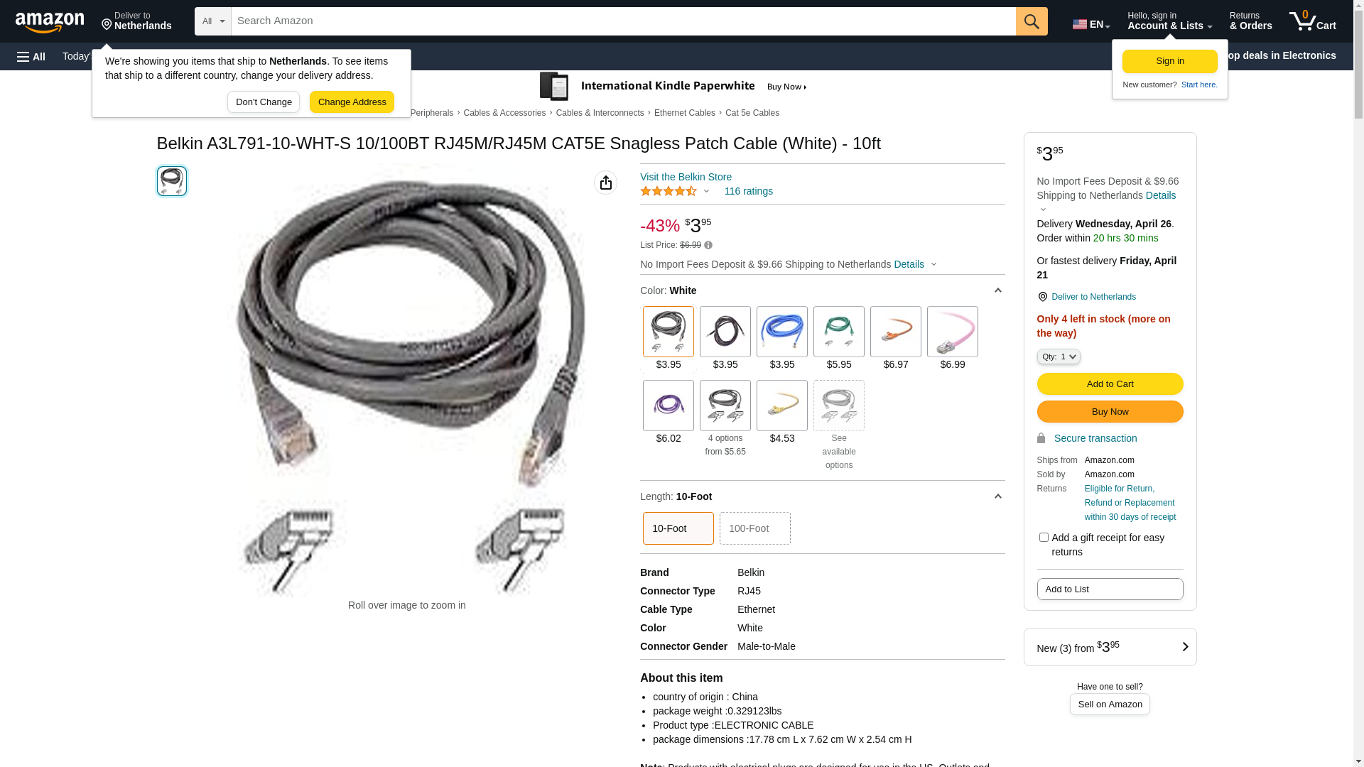 Belkin Cat5E Single Patch Cable Rj45M/rj45M White, 10Ft - A3L791-10-WHT-S