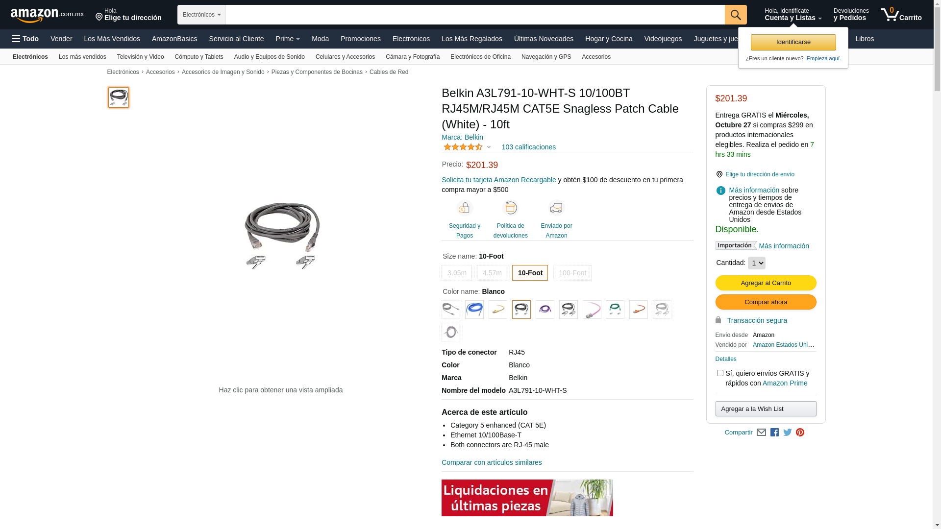 BELKIN cat5e 10ft white patch cord w/snagless boot A3L791-10-WHT-S
