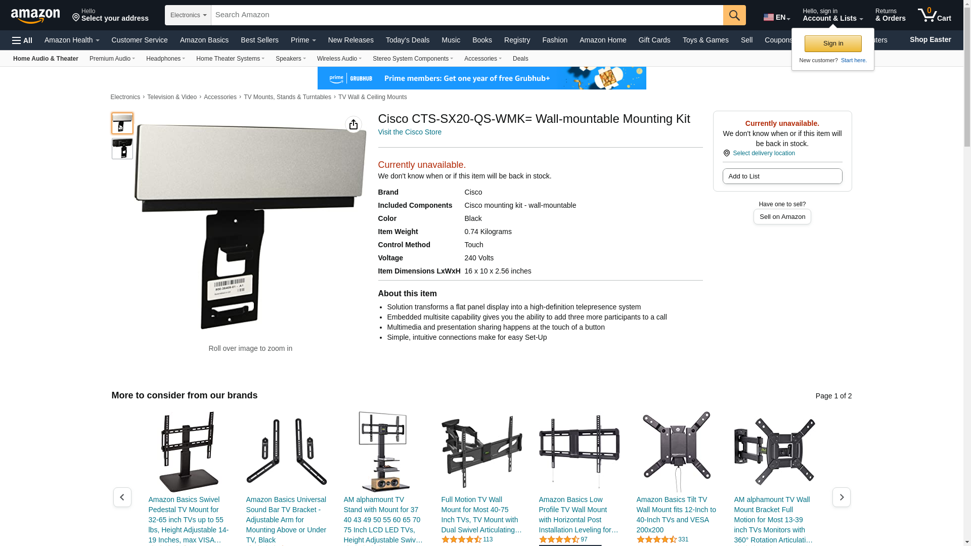 Cisco CTS-SX20-QS-WMK= Wall-mountable Mounting Kit