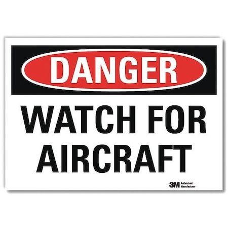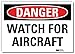 Danger Sign, Horizontal Rectangle, Number of Printed Sides 1, English, Sign Format Traditional OSHA, Sign Legend Watch For Aircraft, Sign Legend Background Color White, Sign Legend Style Text