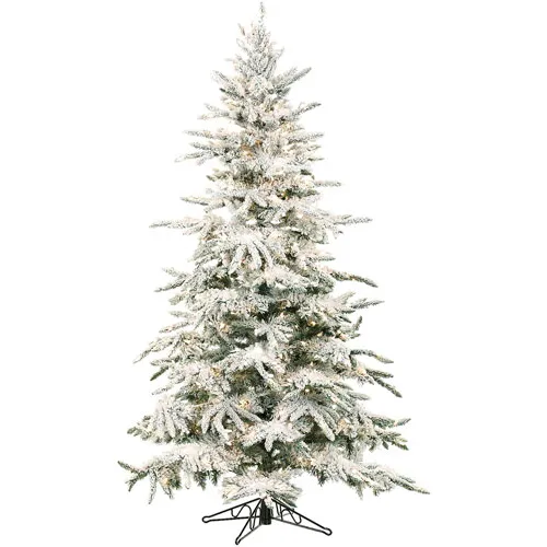 Fraser Hill Farm Artificial Christmas Tree, 7.5 Ft. Mountain Pine Flocked, Clear LED Lights