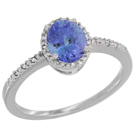 14K White Gold Diamond Natural Tanzanite Engagement Ring Oval 7x5 mm, sizes 5 - 10