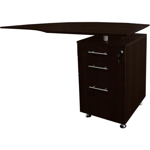 Safco® Medina 63"W Right Curved Desk Return With Pencil-Box-File Pedestal Mocha